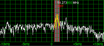 The first mode applies if the passband center is dragged using the left mouse button. The second mode is activated if the passband center is dragged using the right-mouse button (a PBT symbol will appear to indicate this mode).