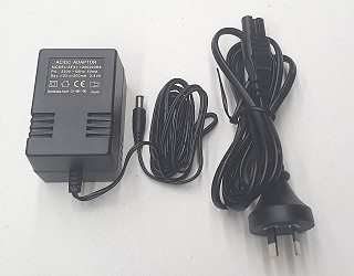 12 V DC output, capable of supplying up to 200 mA. Cords