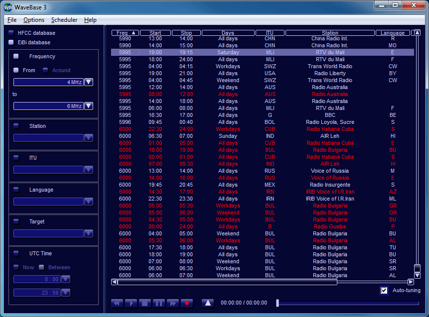 The WaveBase 3 database can import the HFCC (High Frequency Co-ordination Conference) and EiBi frequency lists which are freely available on the Internet.