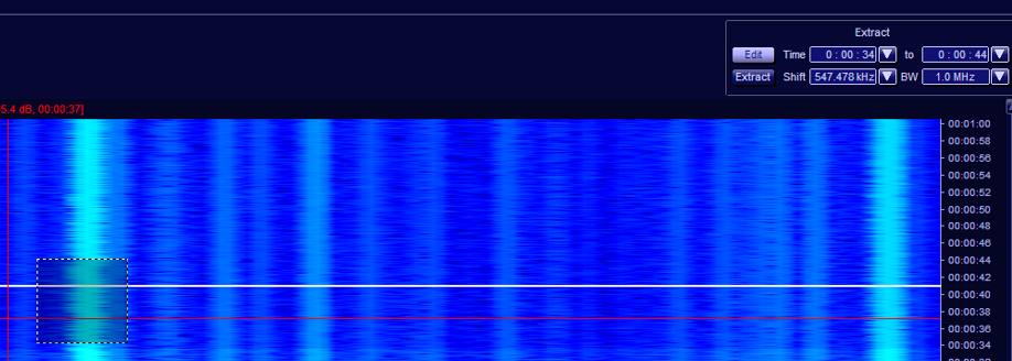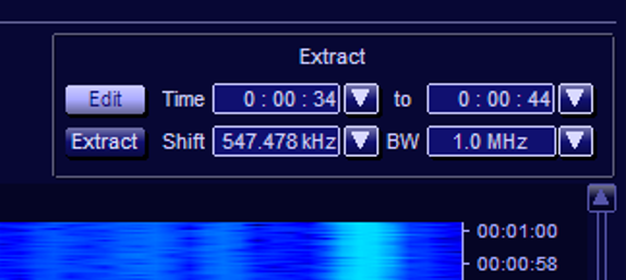 Select the target signal on the waterfall, this can be achieved by dragging the mouse of specifying the time, shift and bandwidth. Next click on the Extract button and choose a location for the file.