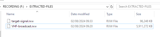 The resulting extracted file of a section of the target signal is much smaller, so can be more easily transported (96MB rather than 5.9GB).